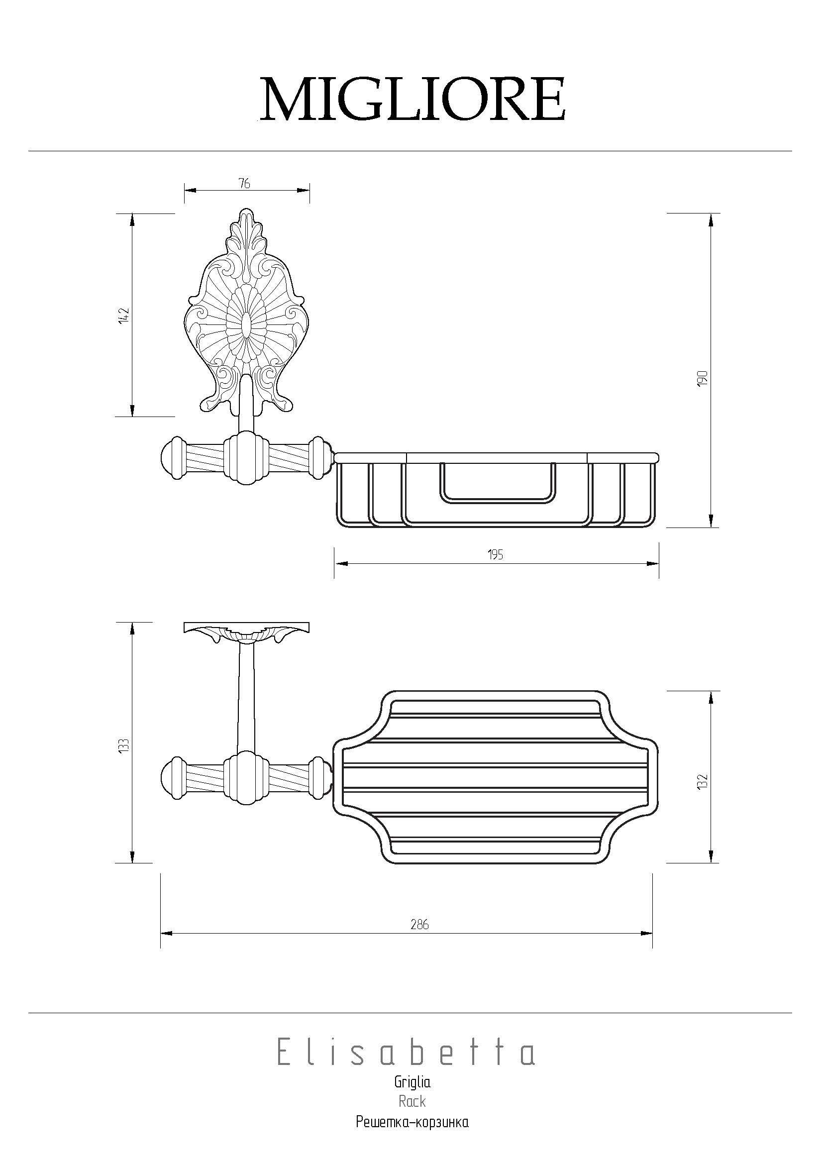 Решетка-корзинка настенная коллекции ELISABETTA бренда MIGLIORE станет незаменимым аксессуаром в душевой кабине, поскольку на решетке не скапливается вода и мыло не будет размокать. Розетка аксессуара имеет необычную форму, и удобный крепеж.