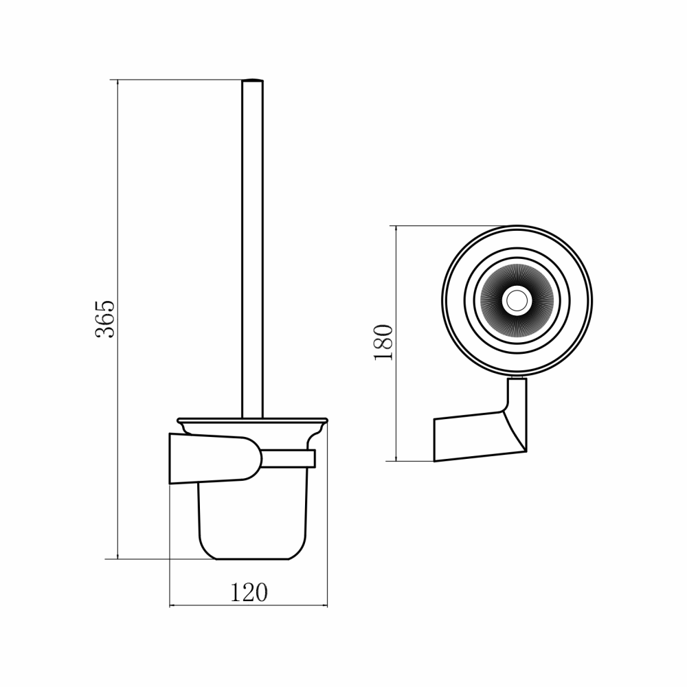 ёршик для унитаза со стеклянным матовым стаканом настенного монтажа, L=180 мм, H=365 мм