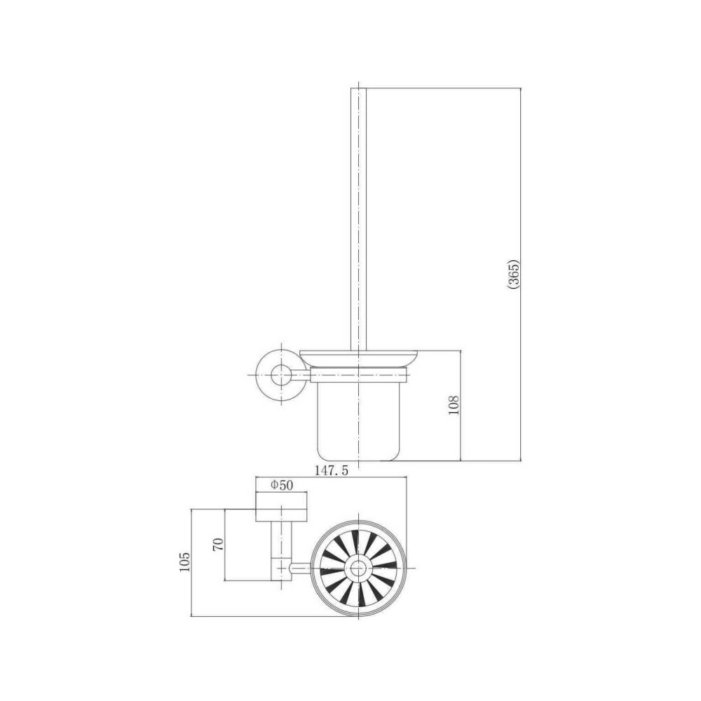 ёршик для унитаза со стеклянным матовым стаканом настенного монтажа, H=365 мм