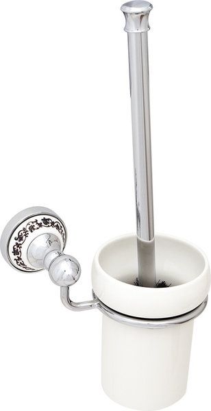 Ершик выполнен в элегантном дизайне, который будет органично смотреться в интерьере ванной в классическом стиле или ретро. Керамический декор настенных креплений белого цвета с черным изящным орнаментальным узором.