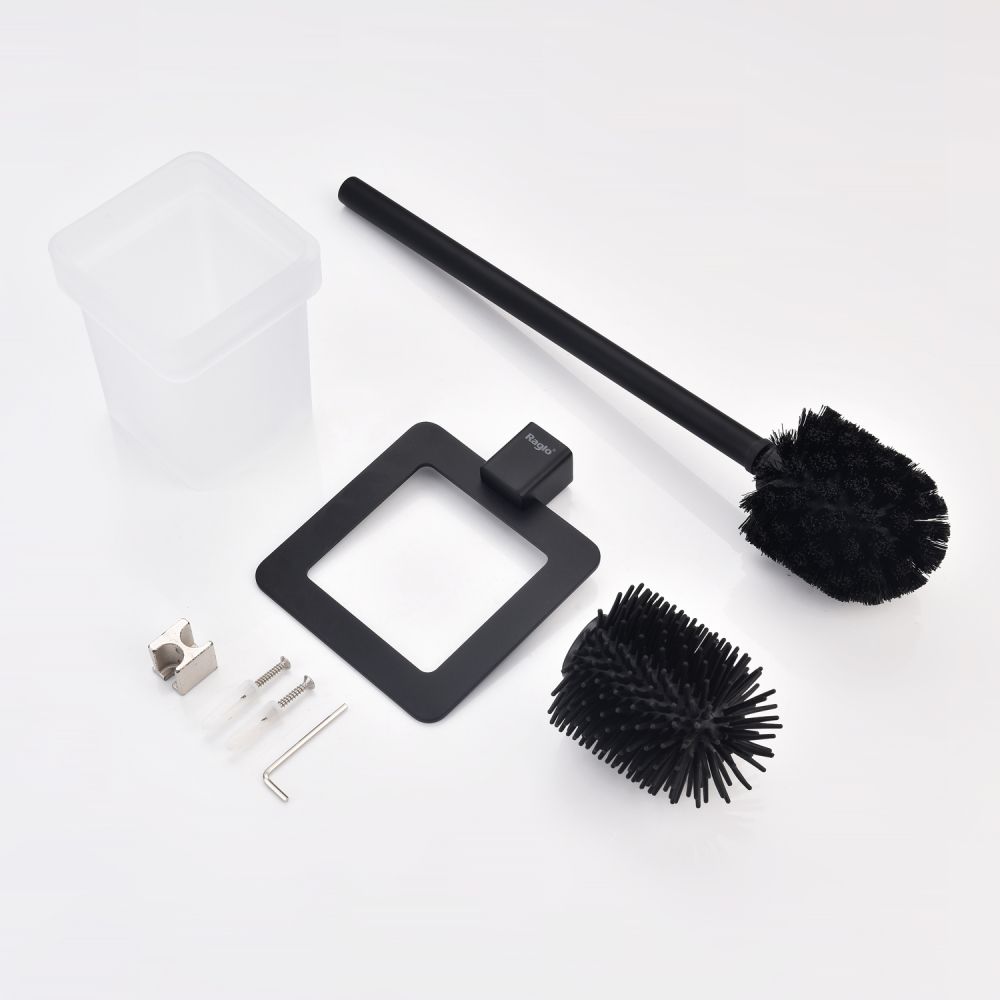Raglo R301.10.06 Ершик для унитаза настенный с держателем. Форма квадратная, цвет - черный, полуматовое покрытие. Крепление в комплекте, в комплекте две насадки!