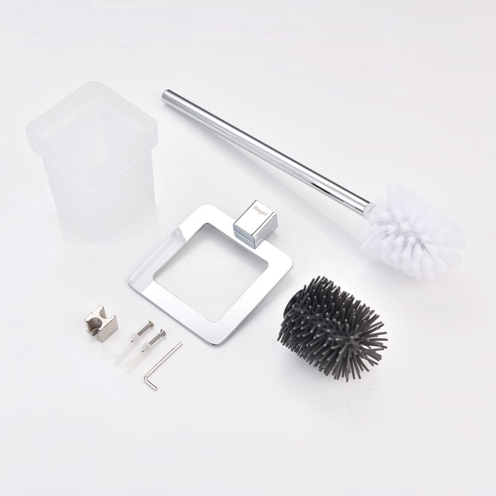 Raglo R301.10 Ершик для унитаза настенный с держателем. Форма квадратная, цвет - хром, глянцевое покрытие. Крепление в комплекте.