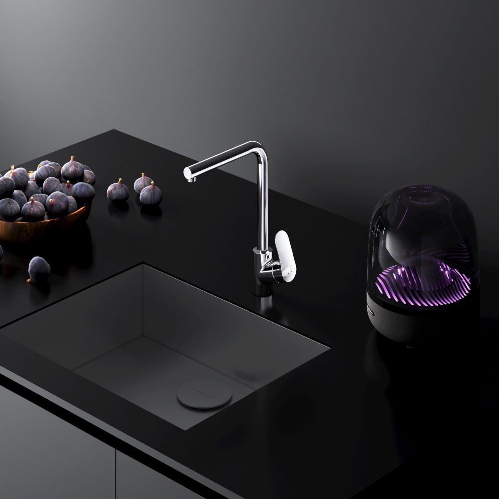 Максимальный комфорт: плавное вращение излива обеспечивает непревзойденное удовольствие от использования и удобство в работе на кухне.