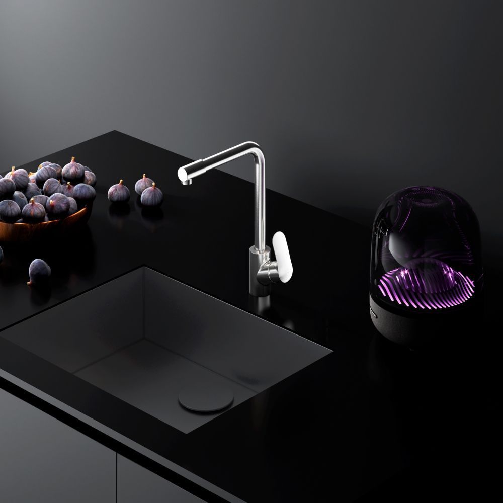 Долгожданное пополнение в линейке кухонных смесителей Like – смеситель для кухни со встроенным каналом для питьевой воды. L-образная архитектура излива позволит разместить смеситель на мойке любого размера и даже под низкими шкафчиками при полном сохранении функционала и комфорта в использовании.