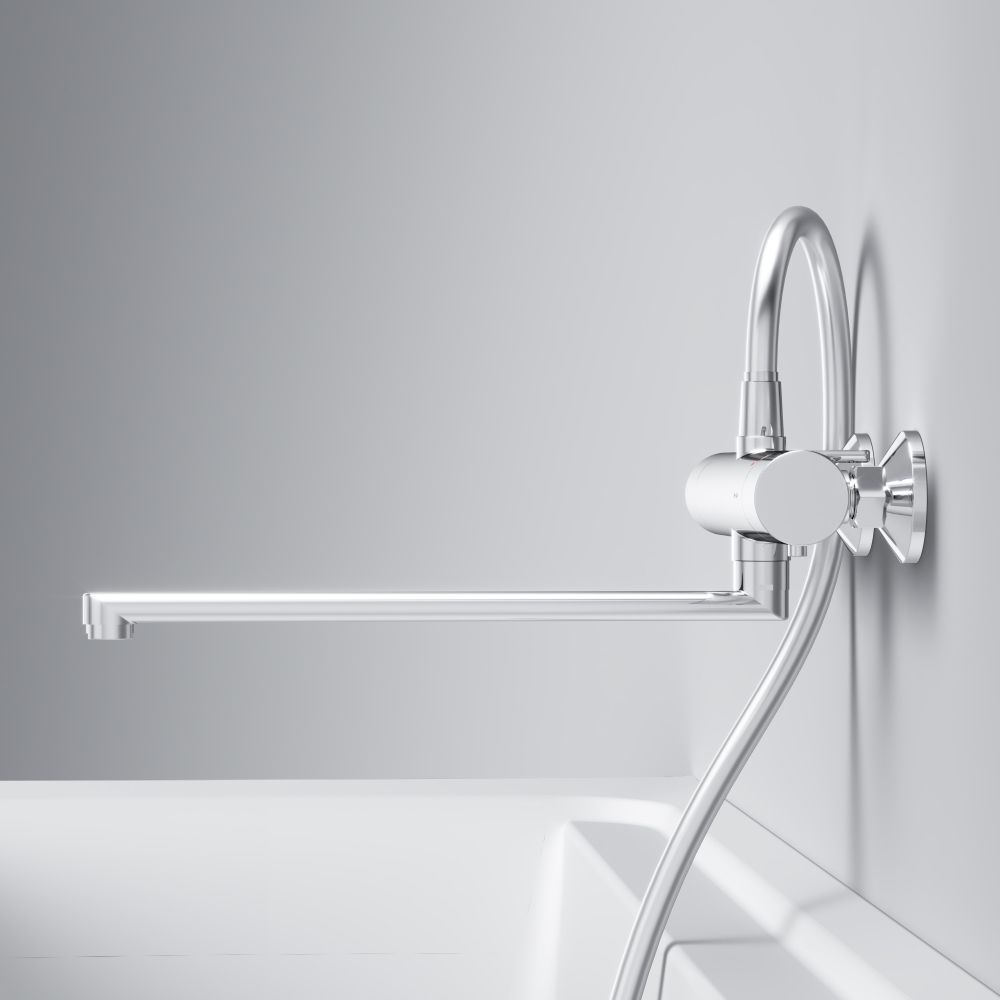 Благодаря специально спроектированной эргономичной форме ручки вы можете управлять смесителем даже с мыльными руками.