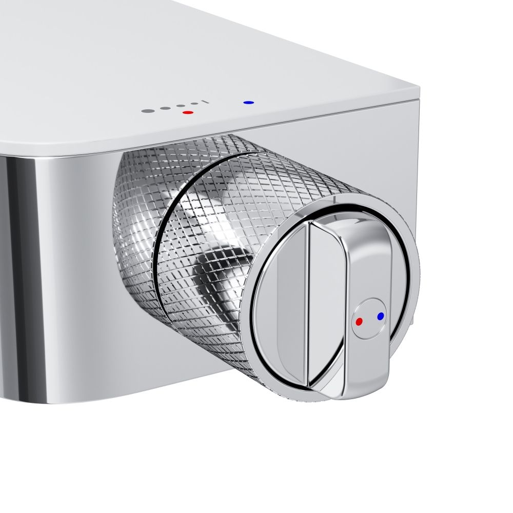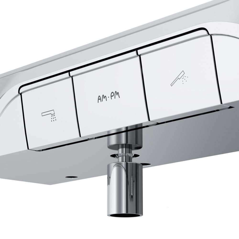 Интуитивно понятное управление: всего одна удобная ручка для настройки температуры и потока воды. Благодаря специально спроектированной эргономичной ручке вы можете управлять душевым смесителем даже с мыльными руками. Переключение потоков воды осуществляется нажатием клавиши. Комбинированный способ управления и вариативность функций делают смеситель одним из самых удобных на рынке.