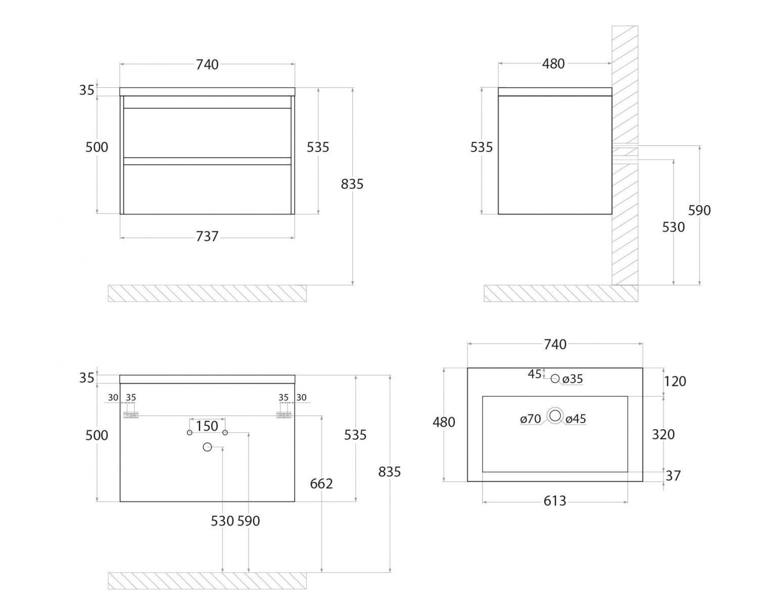крепление к стене ; ящики с доводчиками |