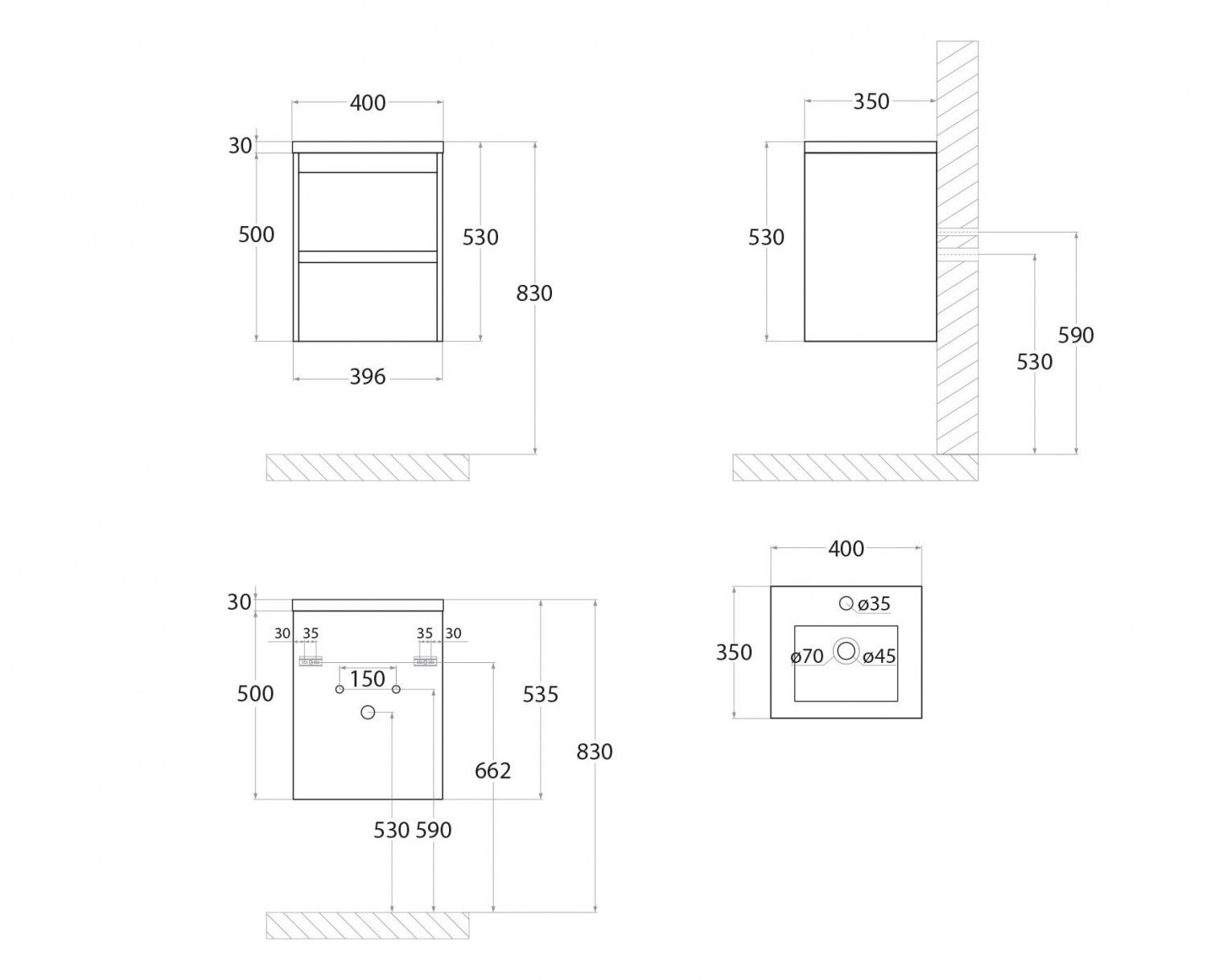 крепление к стене ; ящики с доводчиками |