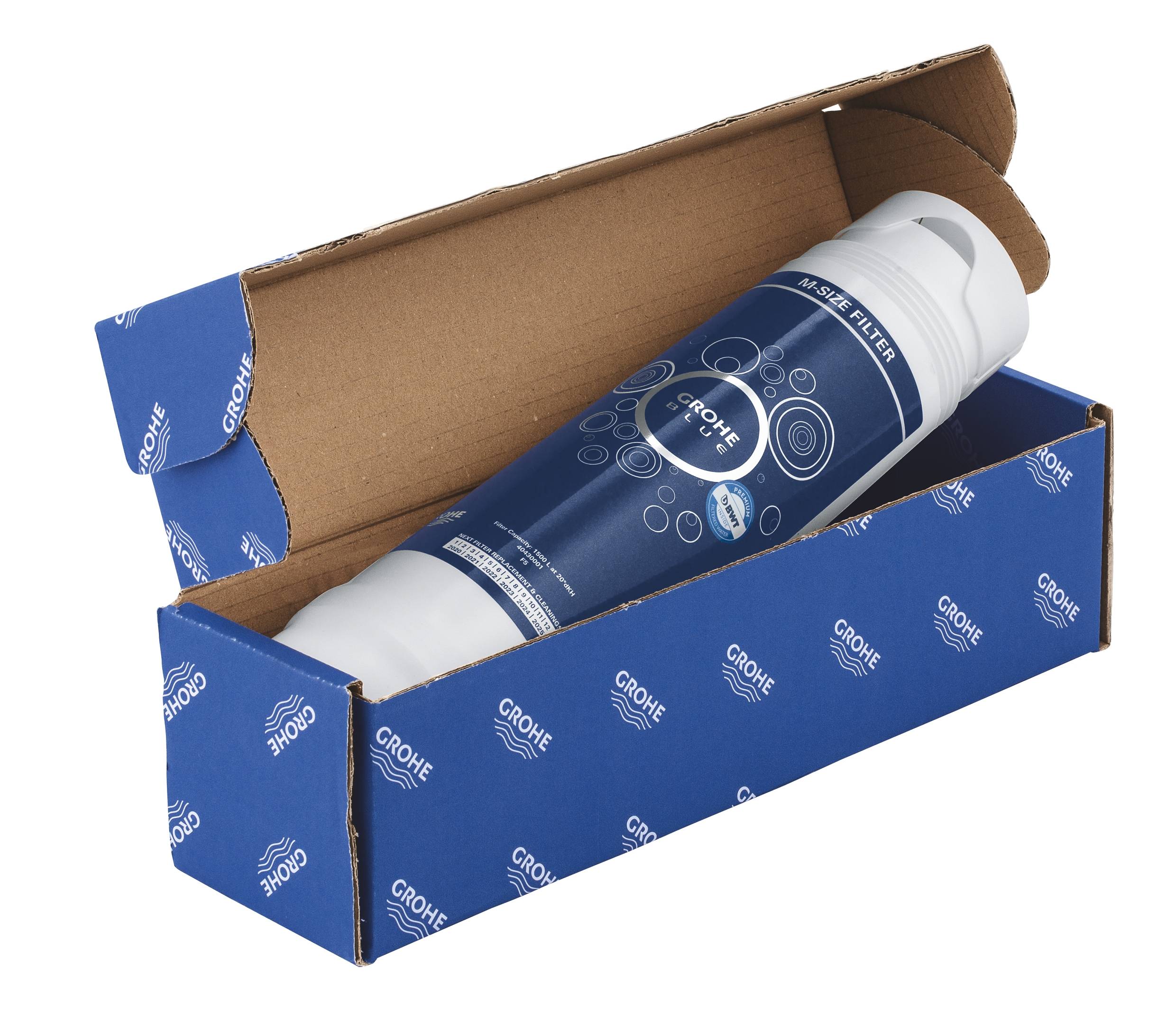 Фильтр стандартного размера на 1500 литров GROHE Blue® превратит обычную воду в воду премиум качества.