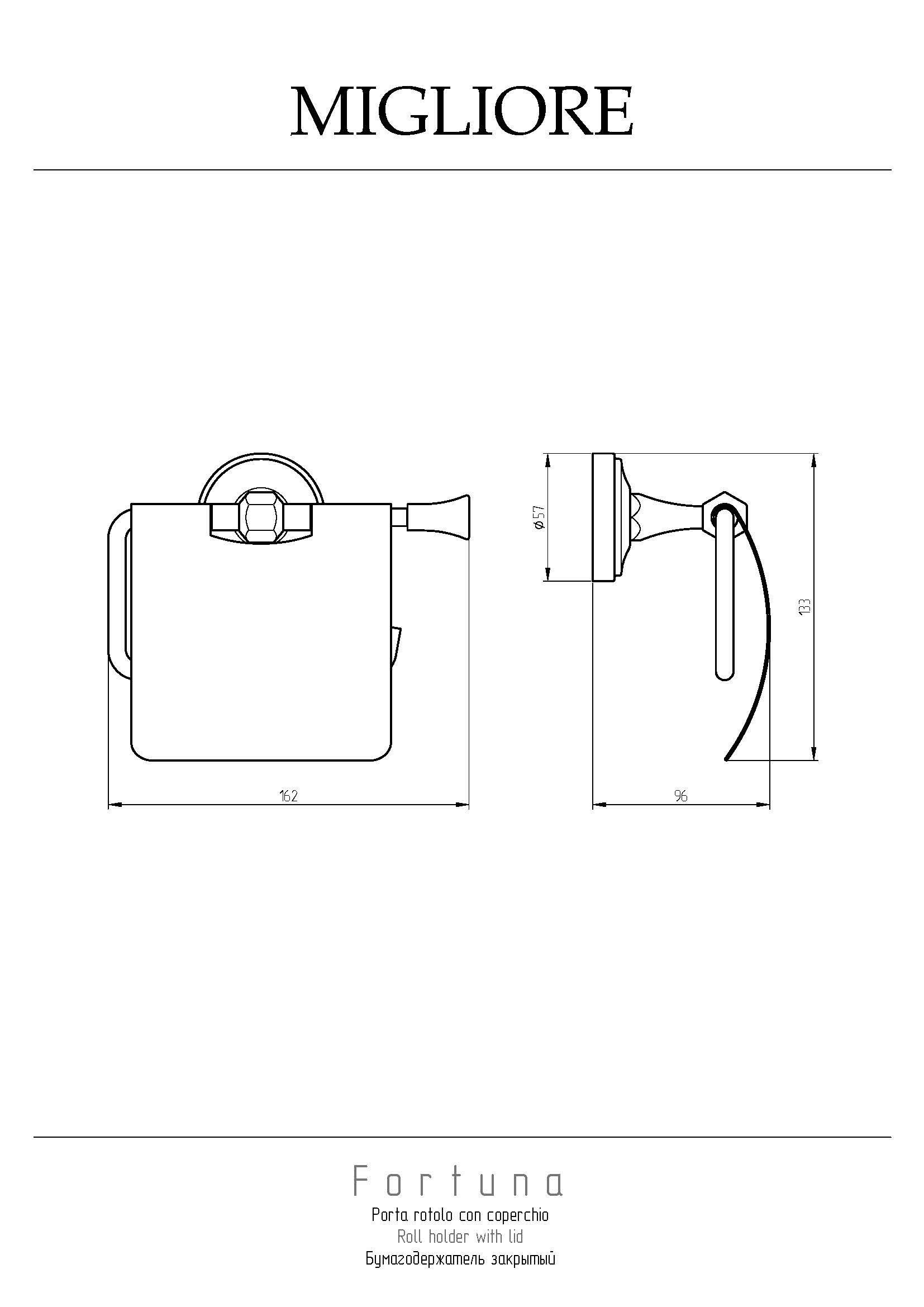Бумагодержатель закрытый серии FORTUNA бренда MIGLIORE — это один из необходимых аксессуаров для ванной комнаты. У бумагодержателя имеется крышка, которая помимо эстетической функции позволяет защитить бумагу от попадания брызг. Материал — латунь, покрытие цвета бронза. Внимание: бронзовое покрытие достаточно деликатное и для ухода рекомендуется протирать изделие мягкой безворсовой тряпочкой с мыльным раствором и вытирать насухо или использовать чистящее средство бренда MIGLIORE для смесителей и аксессуаров с деликатными покрытиями бронза, золото, медь.