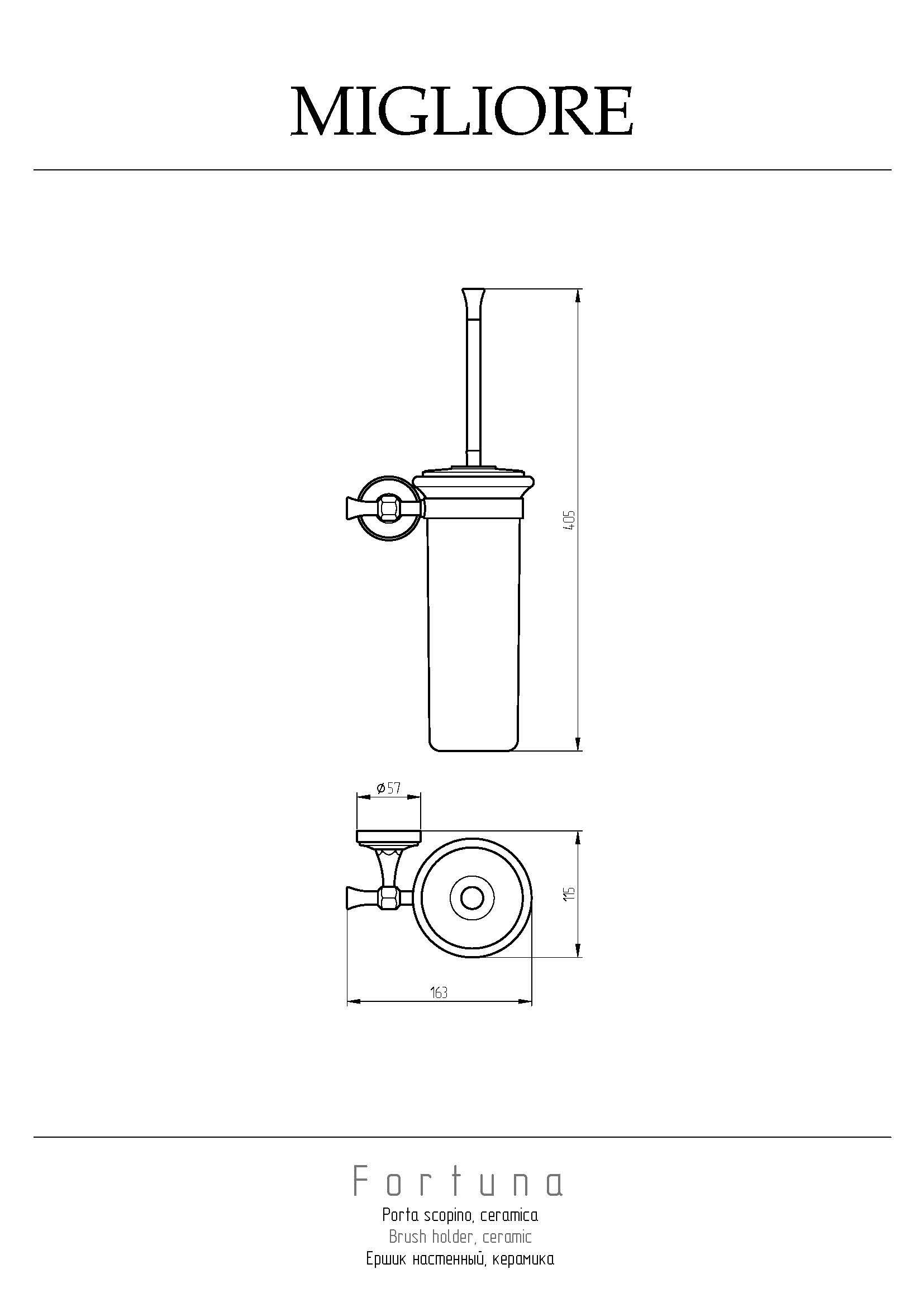 Настенный ершик серии FORTUNA бренда MIGLIORE - это функциональный аксессуар для ванной комнаты. Керамическая колба выглядит эстетично и легко моется, и размещенный на стене ерш не мешает при уборке пола. Материал — латунь, покрытие цвета бронза. Внимание: бронзовое покрытие достаточно деликатное и для ухода рекомендуется протирать изделие мягкой безворсовой тряпочкой с мыльным раствором и вытирать насухо или использовать чистящее средство бренда MIGLIORE для смесителей и аксессуаров с деликатными покрытиями бронза, золото, медь.