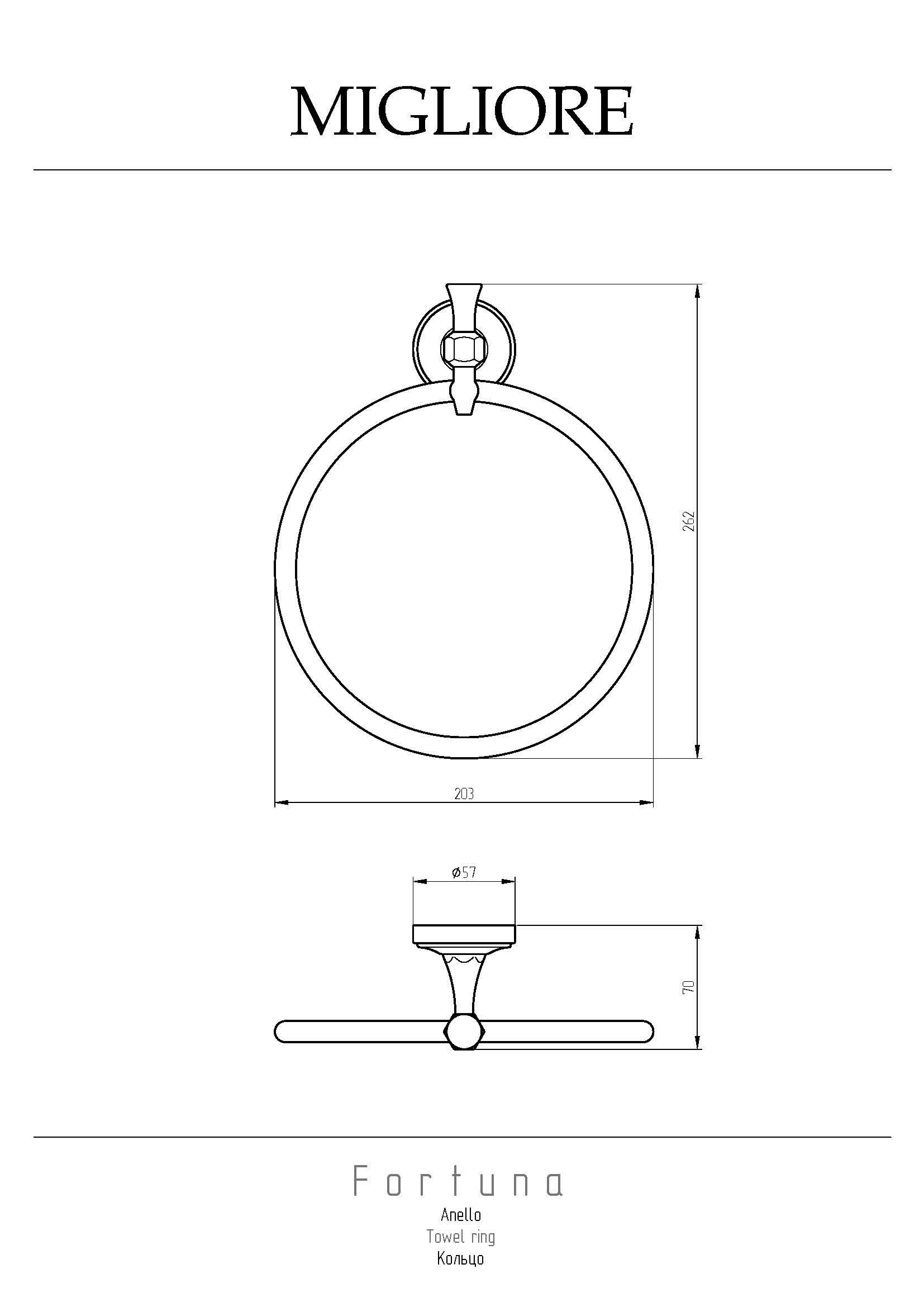 Кольцо серии FORTUNA бренда MIGLIORE предназначено для небольшого полотенчика для рук или для гигиены. Очень удобно разместить рядом с раковиной или биде. Кольцо имеет небольшой диаметр 21,5 мм и станет функциональным украшением в любой ванной комнате в классическом стиле. Изделие выполнено из высококачественной латуни и имеет гальваническое покрытие золотом 24 карата. Внимание: золотое покрытие очень деликатное и для ухода рекомендуется использовать чистящее средство бренда MIGLIORE для смесителей и аксессуаров с деликатными покрытиями бронза, золото, медь и протирать мягкой ветошью.наченных для ухода за деликатным покрытием цвета бронза бренда MIGLIORE.
