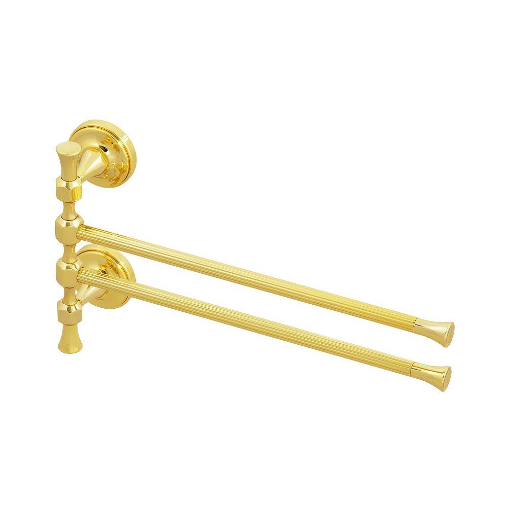 Полотенцедержатель двойной поворотный серии FORTUNA бренда MIGLIORE длиной 32 см очень удобен в использовании. Чтобы повесить его достаточно небольшого пространства, держатели можно размернуть в одну или другую сторону в зависимости от места на стене. Изделие выполнено из высококачественной латуни и имеет гальваническое покрытие золотом 24 карата. Внимание: золотое покрытие очень деликатное и для ухода рекомендуется использовать чистящее средство бренда MIGLIORE для смесителей и аксессуаров с деликатными покрытиями бронза, золото, медь и протирать мягкой ветошью.