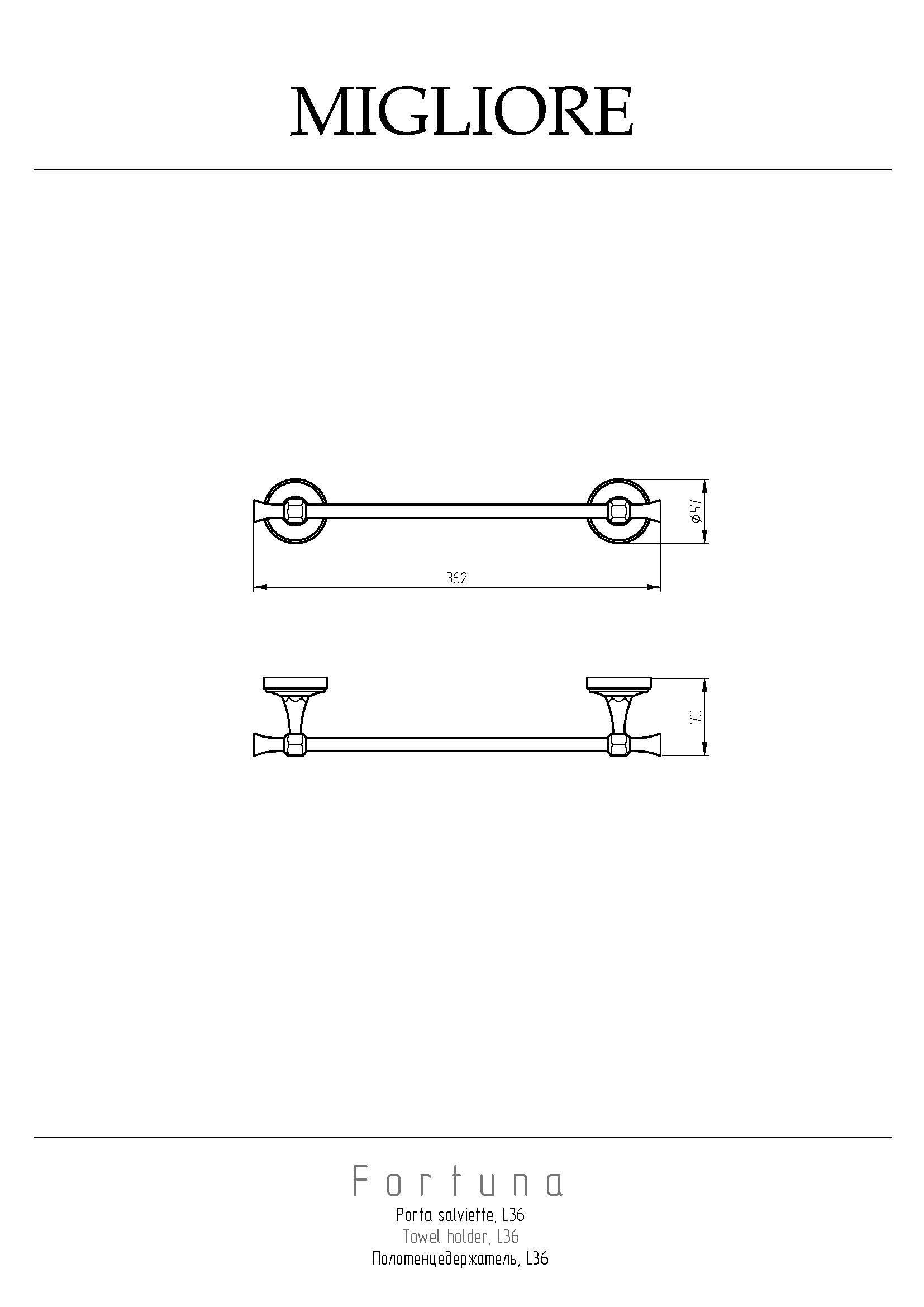 Полотенцедержатель серии FORTUNA бренда MIGLIORE - функциональный аксессуар для ванной комнаты. Его длина 36 см, что позволит разместить его даже на небольшом пространстве. Используется, как правило, для полотенца небольшого размера. Также удобно разместить рядом с биде. Материал — латунь, покрытие цвета бронза. Внимание: бронзовое покрытие достаточно деликатное и для ухода рекомендуется протирать изделие мягкой безворсовой тряпочкой с мыльным раствором и вытирать насухо или использовать чистящее средство бренда MIGLIORE для смесителей и аксессуаров с деликатными покрытиями бронза, золото, медь.