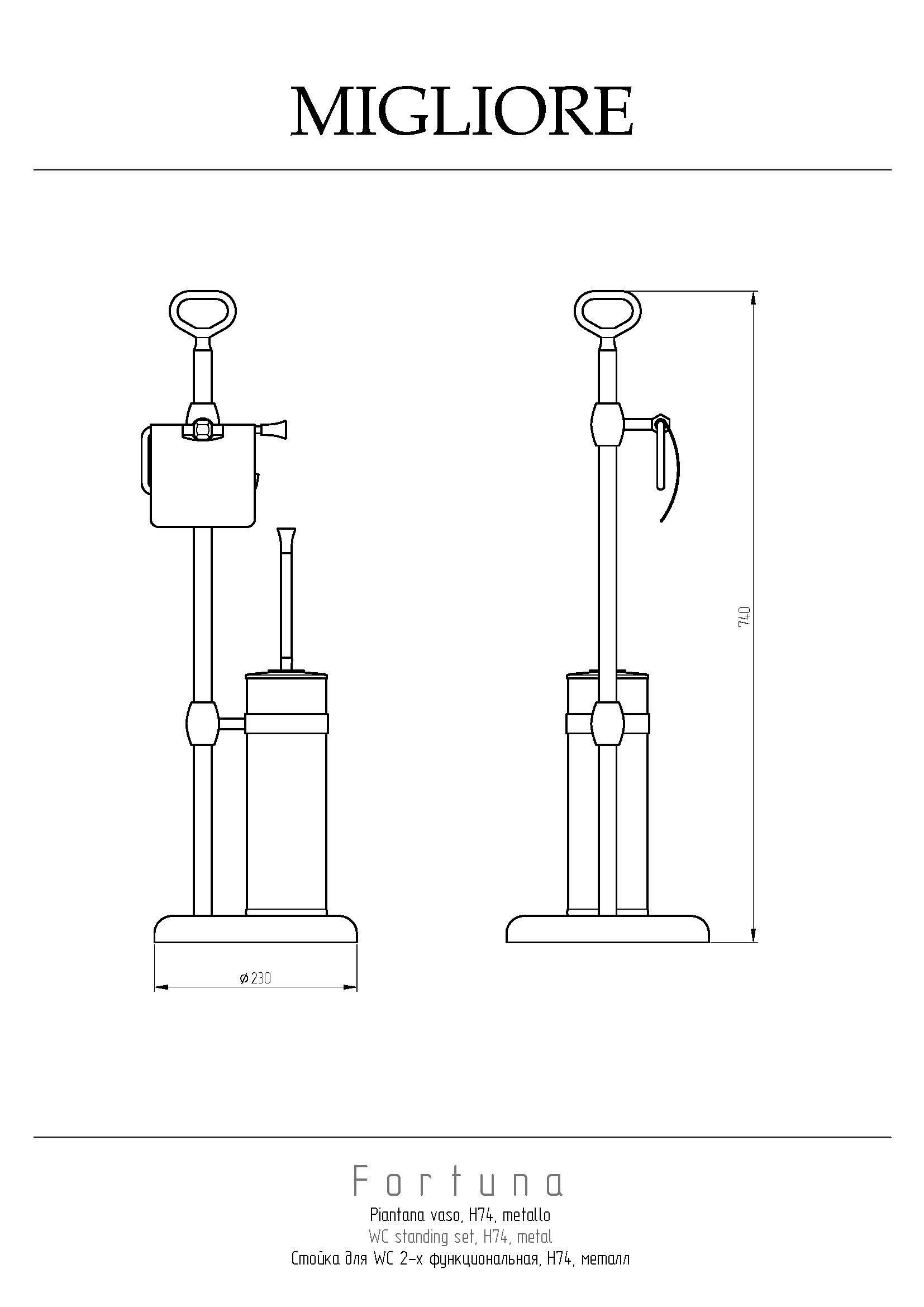 Стойка для унитаза серии FORTUNA бренда MIGLIORE - это многофункциональный аксессуар для ванной комнаты. На стойке расположен бумагодержатель и металлический ерш, внутри которого находится пластиковая колба, которую можно вынуть, чтобы помыть. Изделие выполнено из латуни и имеет высококачественное хромо-никелиевое покрытие, которое при правильном уходе надолго сохранит свой блеск. Рекомендуется использовать чистящее средство бренда MIGLIORE для смесителей и аксессуаров с хромированным покрытием.
