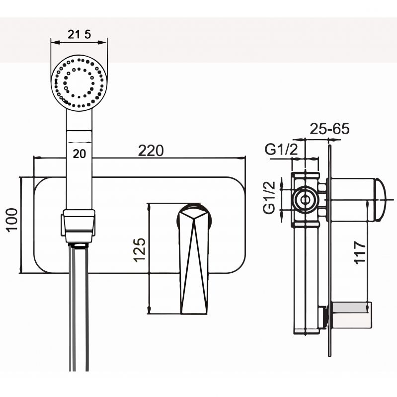 - Диаметр гигиенического душа: 21,5 мм.
