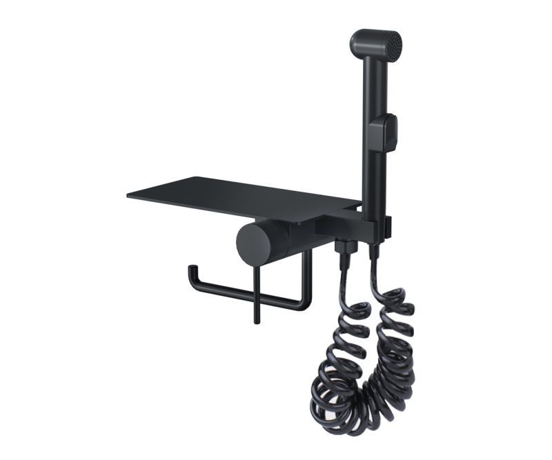 Гигиенический душ со смесителем Bronze de Luxe SCANDI 708/1B, черный. Монтаж: внутренний (скрытый). Оснащен держателем для туалетной бумаги и полочкой.