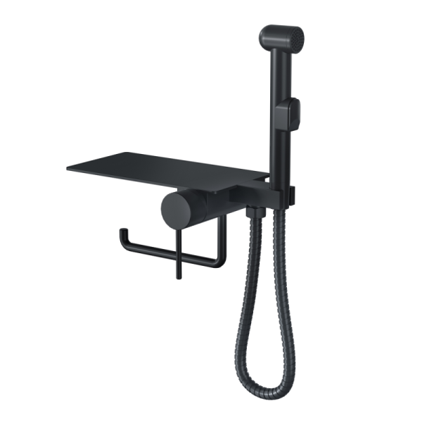 Гигиенический душ со смесителем Bronze de Luxe SCANDI 708B, черный. Монтаж: внутренний (скрытый). Оснащен держателем для туалетной бумаги и полочкой.