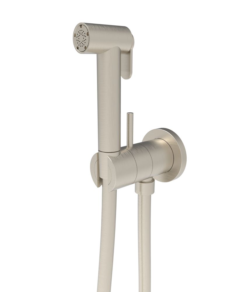 Прогрессивный смеситель с внутренней частью встраиваемый PADLOCK c держателем, гигиенический душ KSPAT101-07 STELLA - круглый латунный вариант, шланг ULTRAFLEX 1200 mm. H 128 mm
