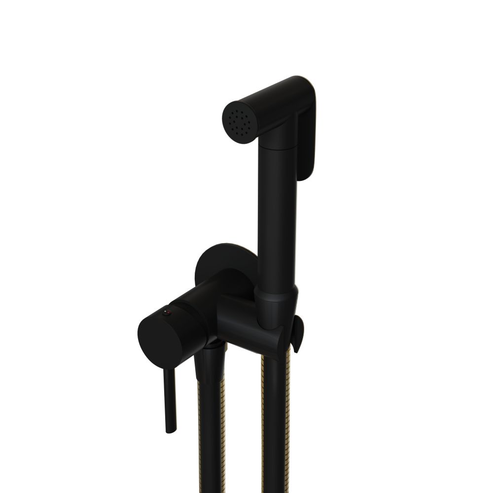 Смеситель круглой формы с гигиенической лейкой, средняя струя. Струя из гигиенического душа выходит плотная, упругая и направленная. Она может быть как мягкой рассеянной, так и интенсивной, в зависимости от выбранного напора воды. Её температура легко регулируется от прохладной до комфортно тёплой. Вода подаётся равномерно без пульсаций, обеспечивая точное и аккуратное очищение. Форма струи в этой модели узконаправленная, что делает её удобной для гигиенических процедур.