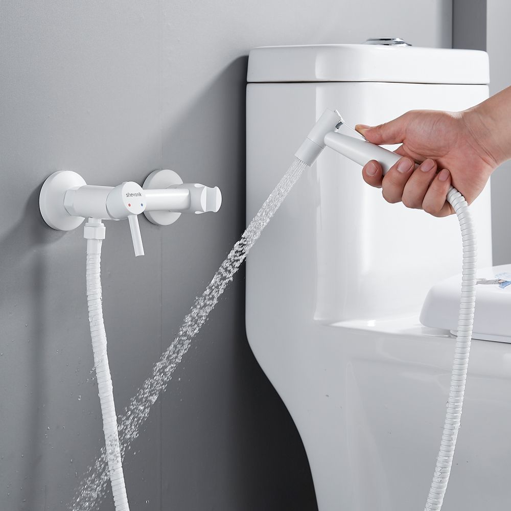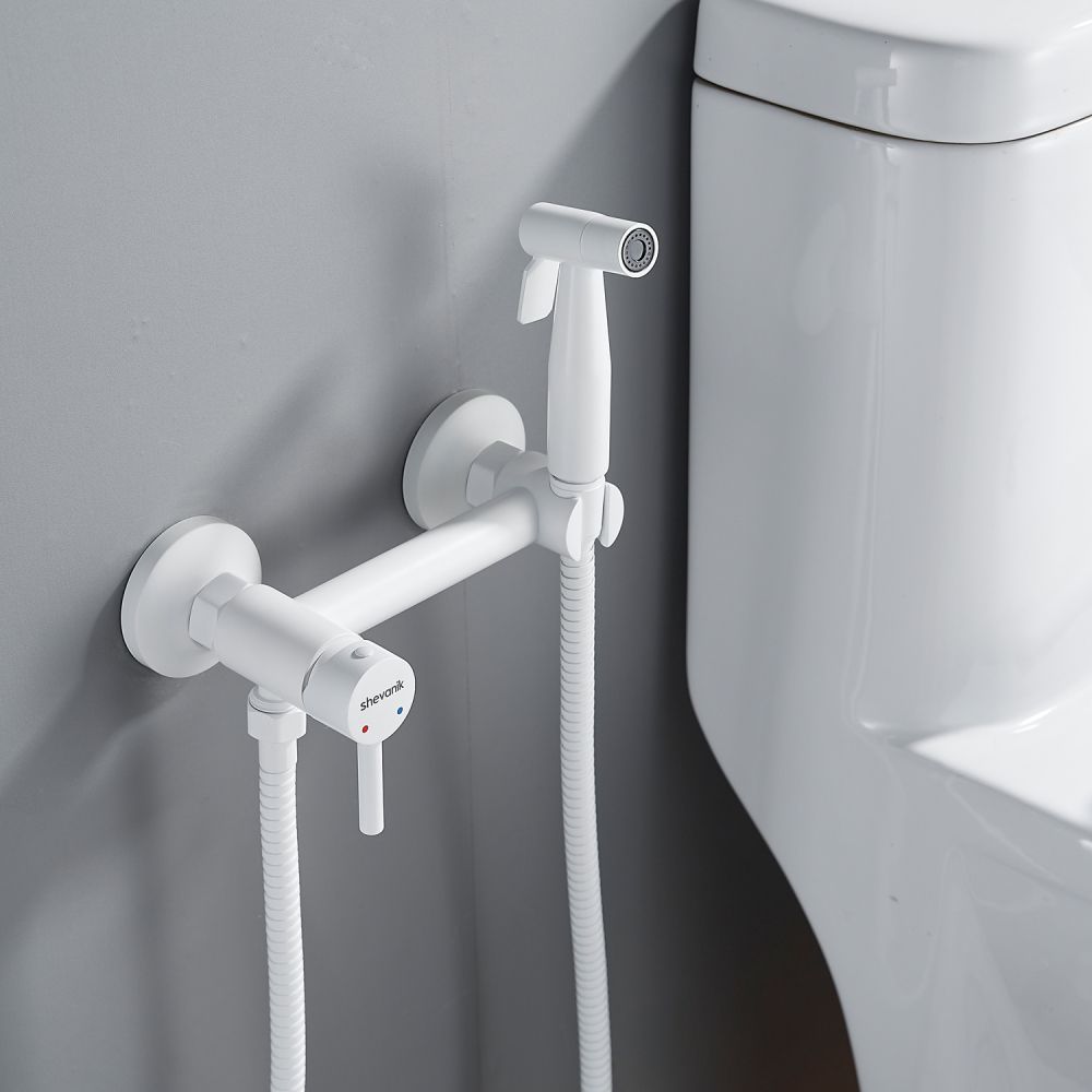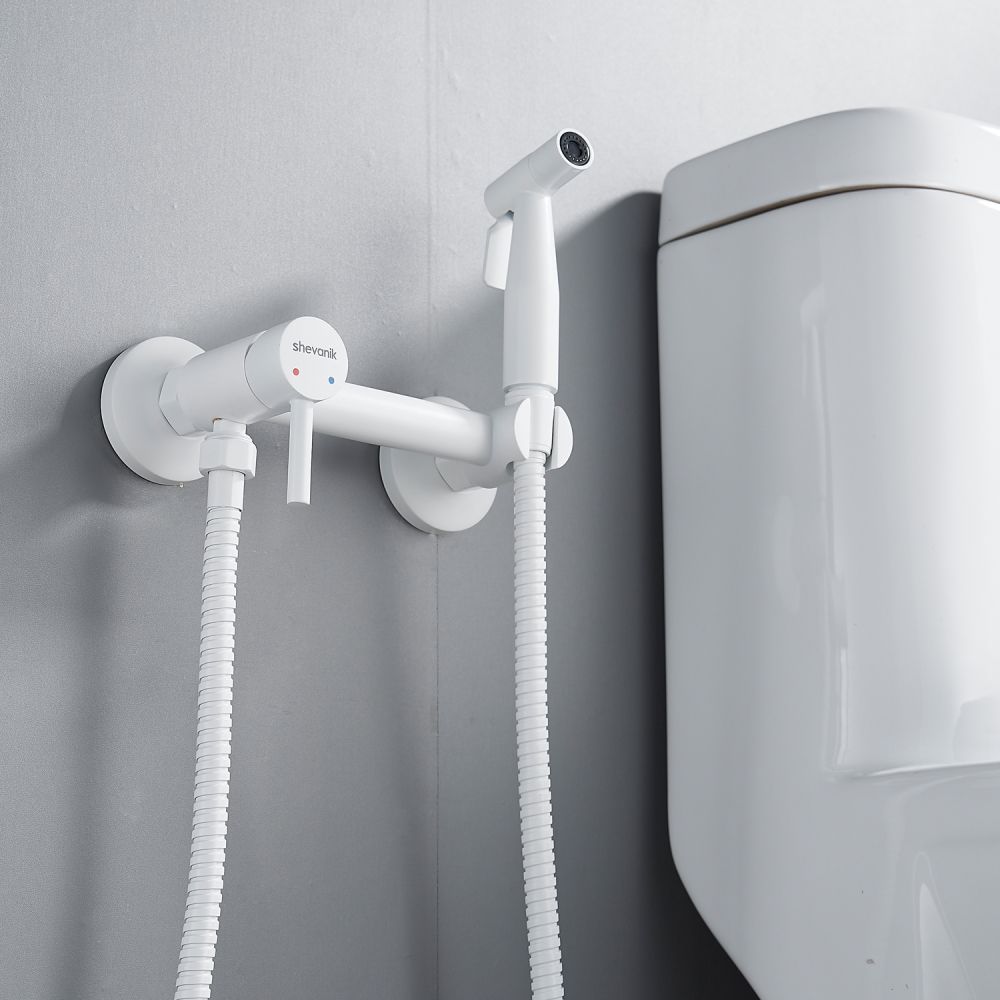 Гигиенический душ со смесителем Shevanik S107C в белом матовом цвете изготовлен из прочной латуни, что гарантирует его долговечность и надежность. Устройство предназначено для настенного монтажа на 2 отверстия с возможностью регулировки межосевого расстояния в 150 мм благодаря входящим в комплект эксцентрикам. Лейка гигиенического душа выполнена из нержавеющей стали, что обеспечивает её устойчивость к коррозии и долгий срок службы. Душевой шланг имеет двойную металлическую оплетку и длину 120 см, что обеспечивает его прочность и защиту от перекручивания. Продукт поставляется с гарантией на 5 лет, что подтверждает его высокое качество и надежность.