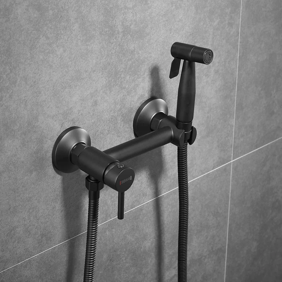 Гигиенический душ со смесителем Shevanik S107H, черный. Материал: латунь. Гарантия: 5 лет. Длина шланга: 150 см.