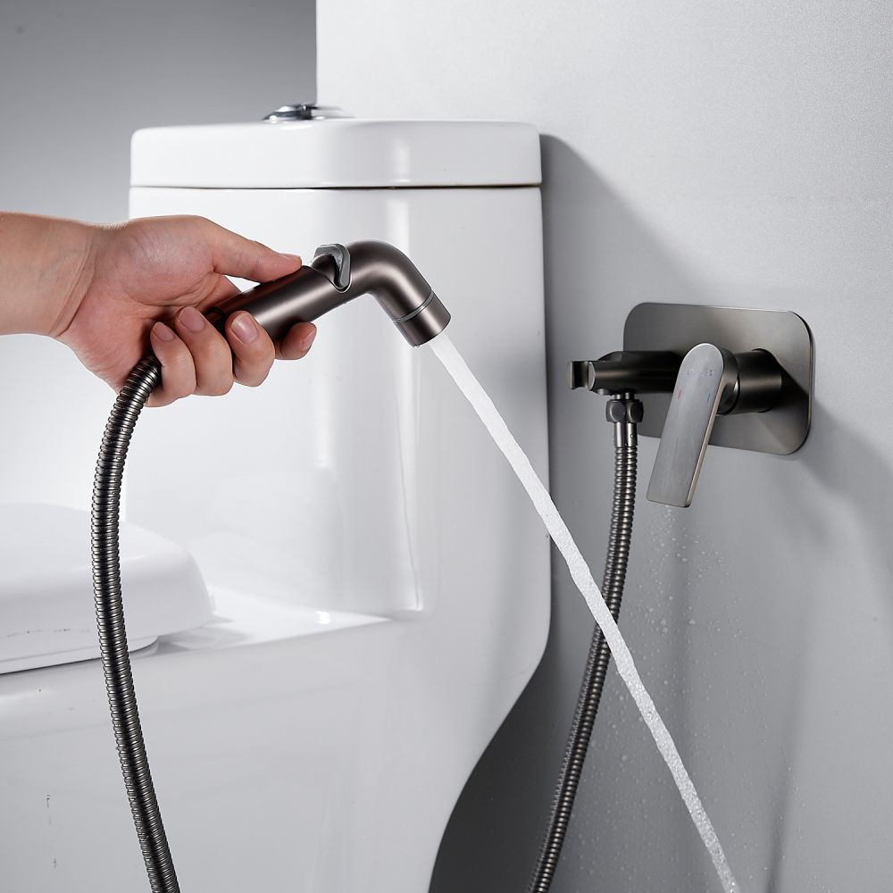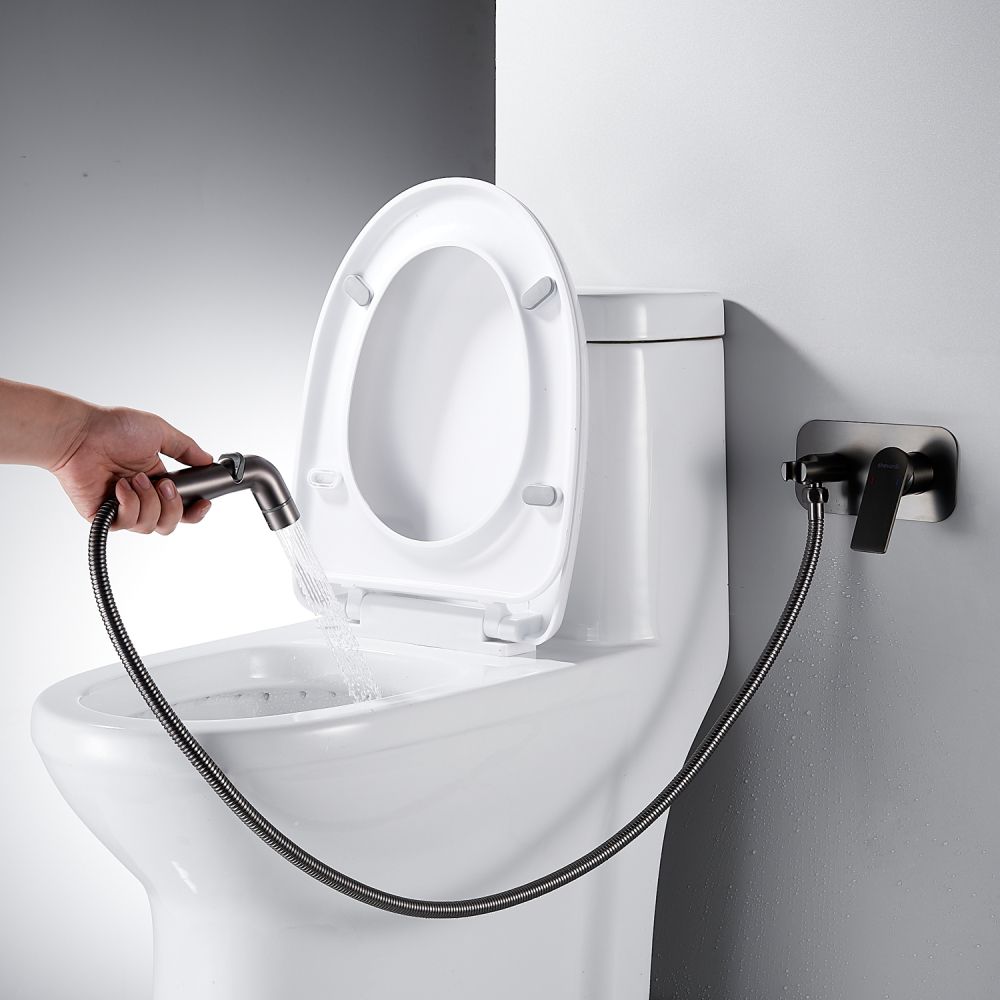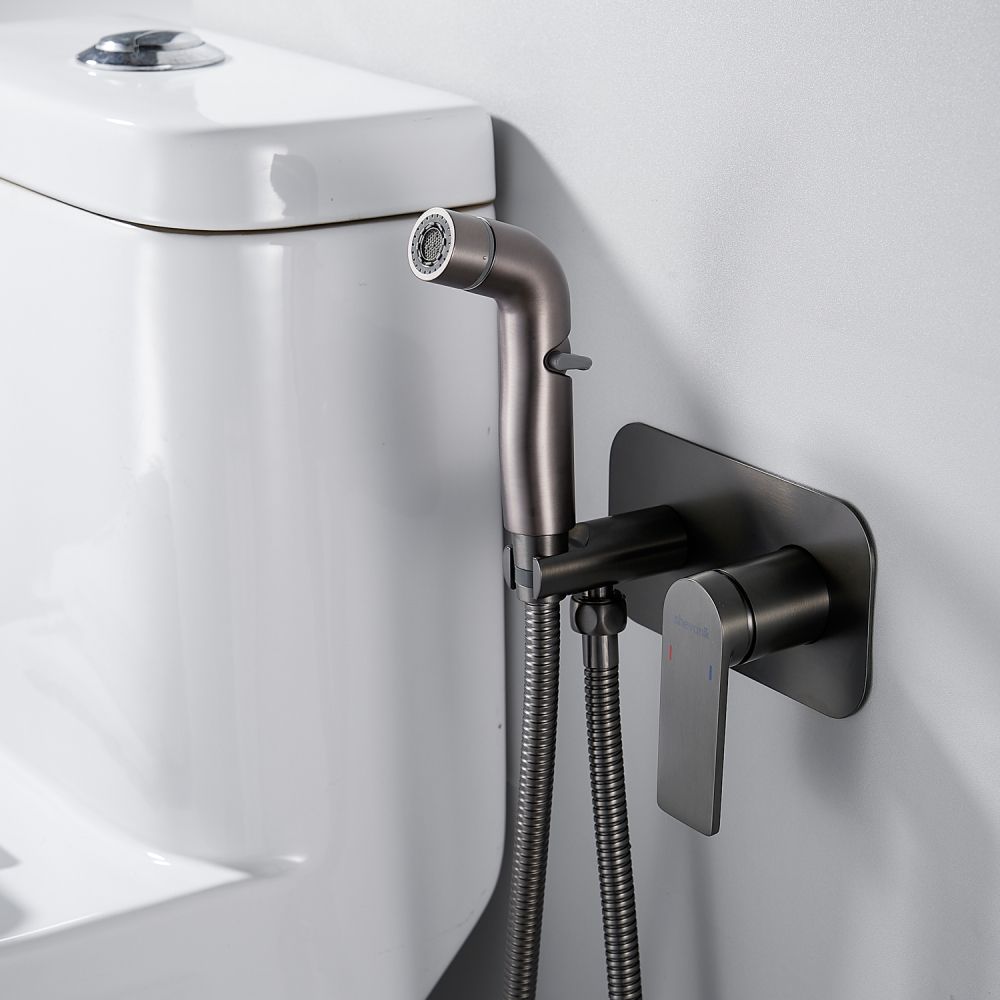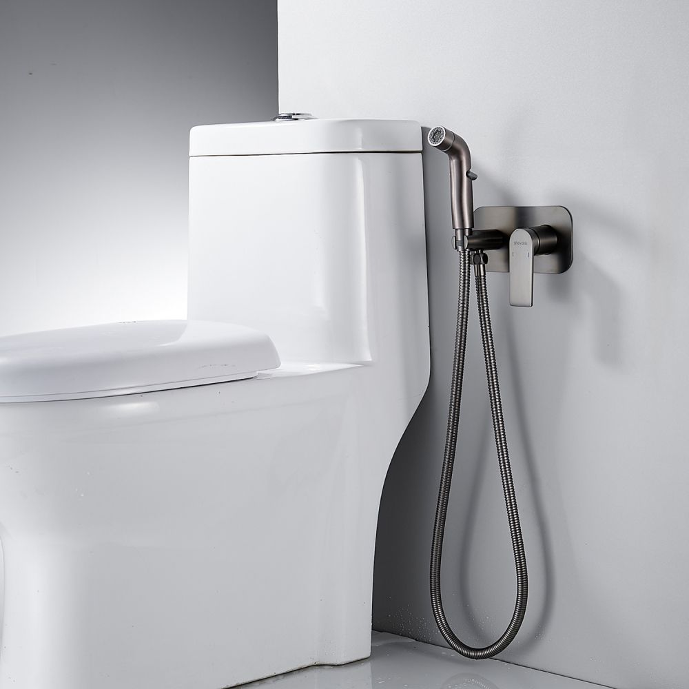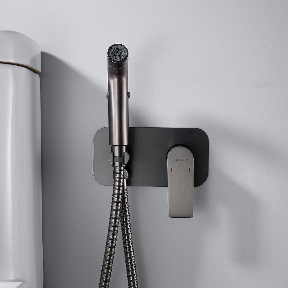 Гигиенический душ со смесителем Shevanik S4105T в современном цвете "оружейная сталь" — это идеальное решение для вашей ванной комнаты, сочетающее в себе элегантность и функциональность. Смеситель выполнен из прочной латуни, что гарантирует его долговечность и надежность. Благодаря скрытому монтажу в стену, он обеспечивает аккуратный и современный внешний вид, а керамический картридж и рычажное управление делают его использование легким и удобным.