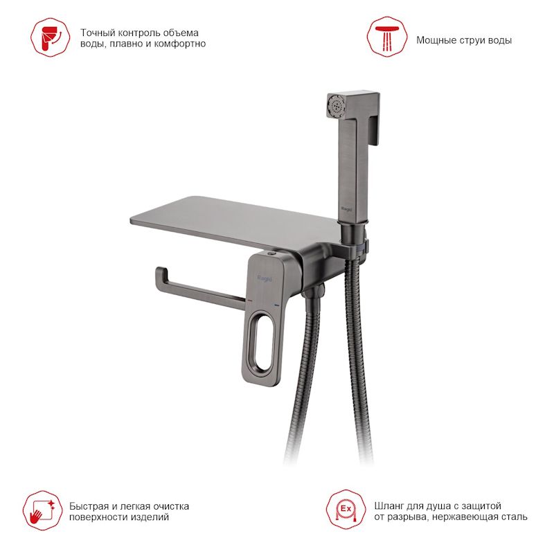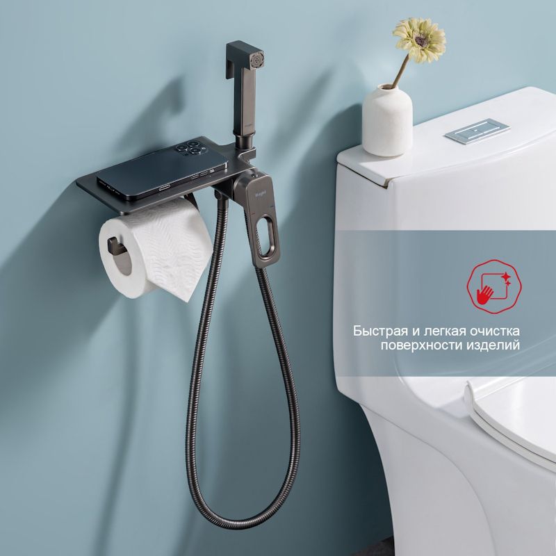смеситель с полкой, бумагодержатель, лейка, шланг, инструкция |