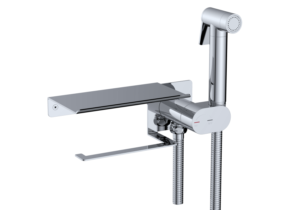 Гигиенический смеситель с прогрессивным картриджем, встраиваемый в стену, с накладной полкой и держателем туалетной бумаги или полотенца, гигиеническая лейка в комплекте - RGW SP-221, хром