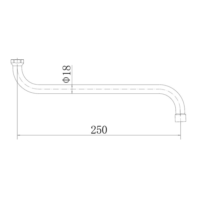 излив круглый S-образный металлический с аэратором, L=250 мм, D=18 мм