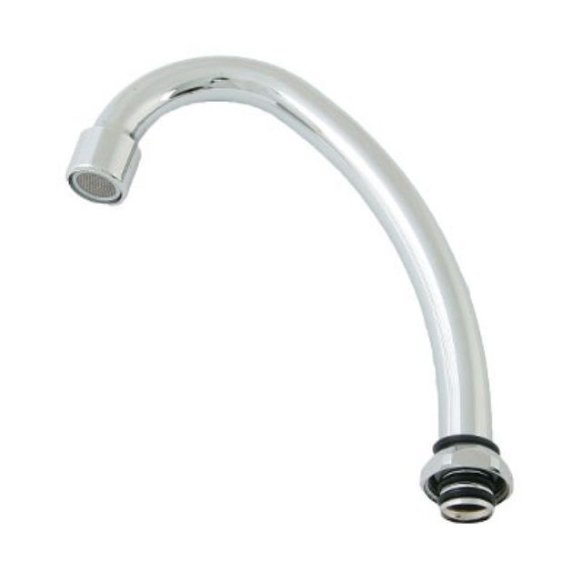 Излив трубчатый, состоит из изогнутой трубки круглого сечения. Диаметр трубки небольшой, поэтому гусак довольно узкий. Такой формат часто встречается в смесителях елочка старого образца.