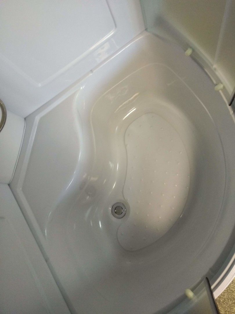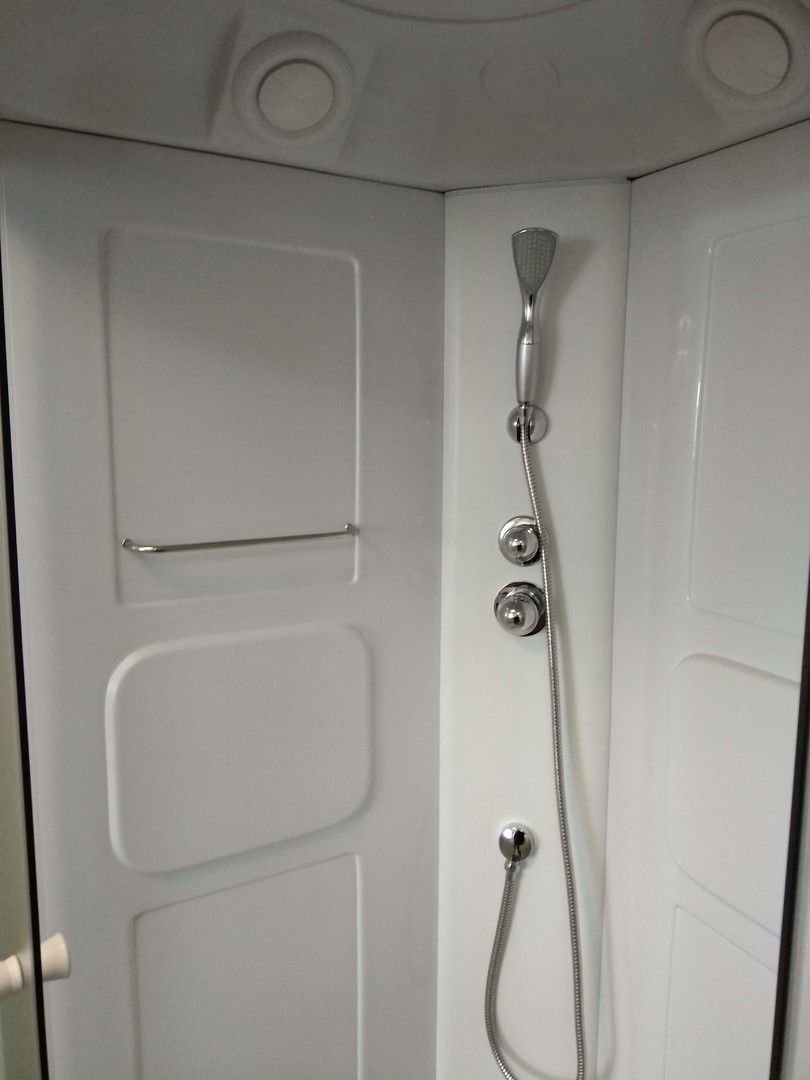 Компактная душевая кабина актуальна для любого оформления ванной комнаты и впишется в любой интерьер. Презентабельный вид придают закаленные стекла, которые способствуют надежности и не боятся химических средств. Это позволяет дольше сохранить внешнюю привлекательность кабины. Наличие в крыше вентиляционных отверстий, закрытых дефлекторами, позволит, при необходимости, снизить влажность, путем подключения к вентиляционной системе.