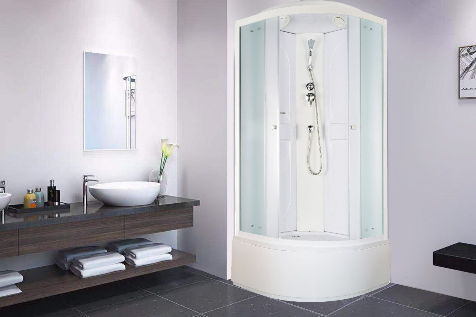 • Поддон: высокий 48 см, полукруглый, с рельефным дном.