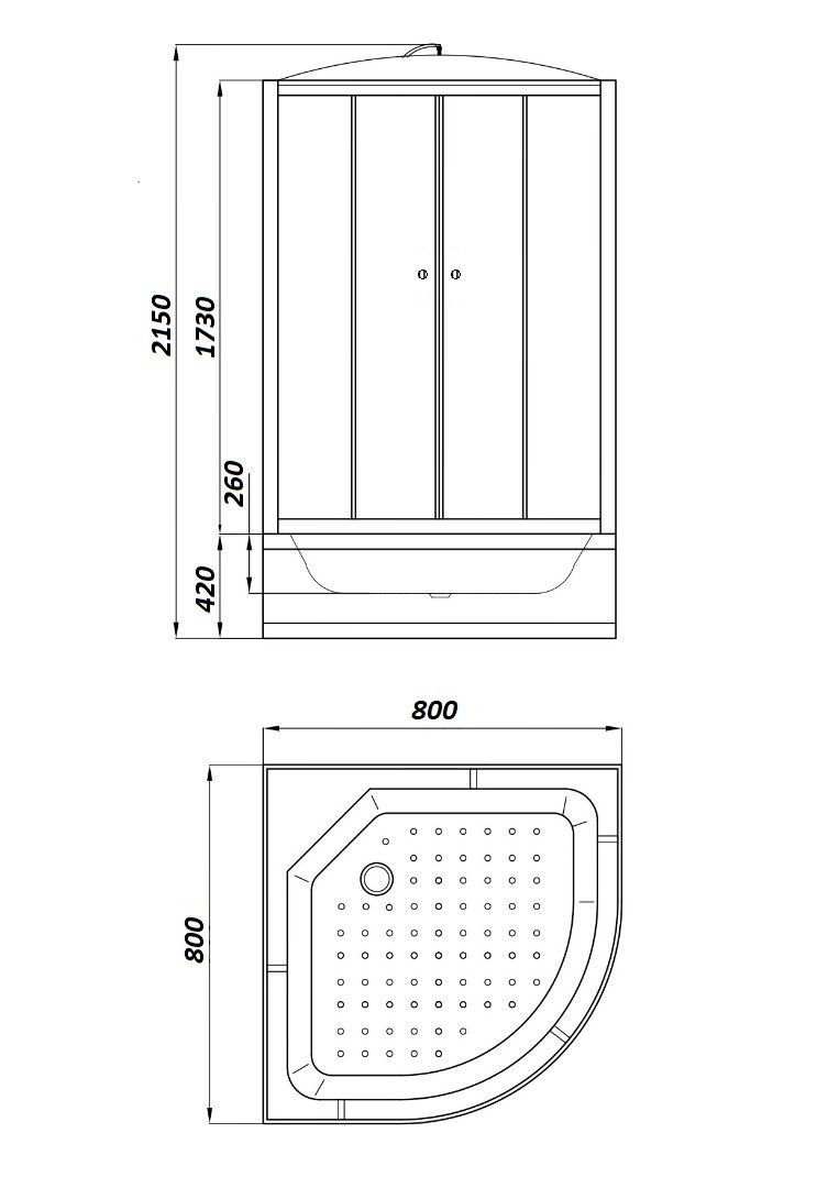 • Высокий поддон (42 см), ABS-пластик, белый, полукруглый. Противоскользящее покрытие поддона предупреждает падения.