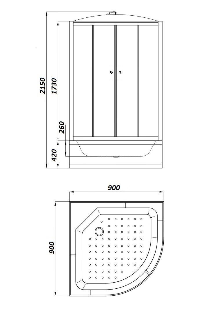 • Высокий поддон (42 см), ABS-пластик, белый, полукруглый. Противоскользящее покрытие поддона предупреждает падения.