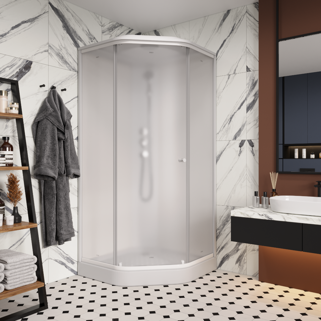 Душевая кабина трапециевидной формы актуальна для любого оформления ванной комнаты и впишется в любой интерьер. Презентабельный вид придают закаленные стекла, которые способствуют надежности и не боятся химических средств. Это позволяет дольше сохранить внешнюю привлекательность кабины. Наличие в крыше вентиляционных отверстий, закрытых дефлекторами, позволит, при необходимости, снизить влажность, путем подключения к вентиляционной системе.