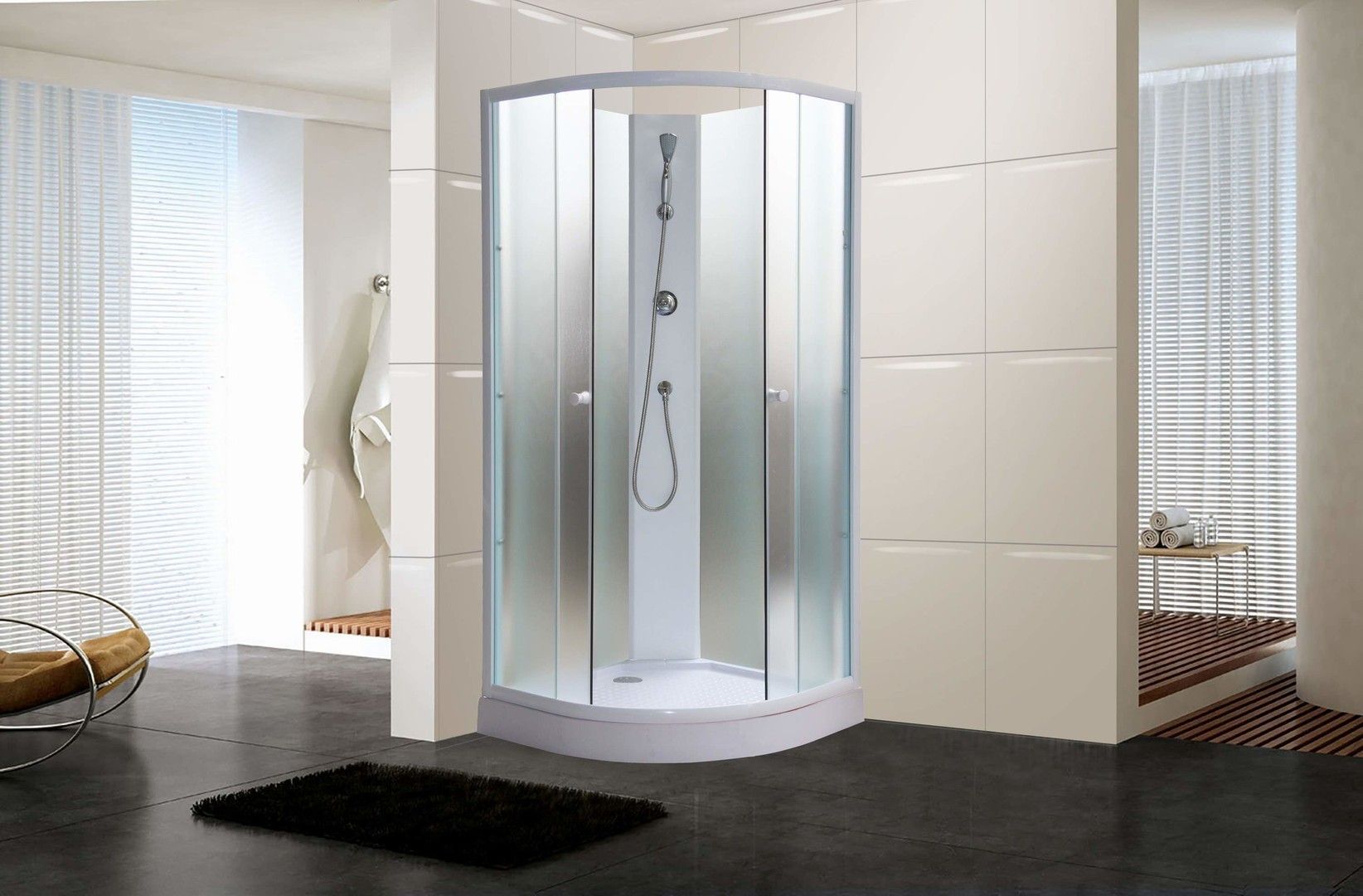 • Поддон: низкий 10 см, полукруглый. Рельефное дно предупреждает падения.