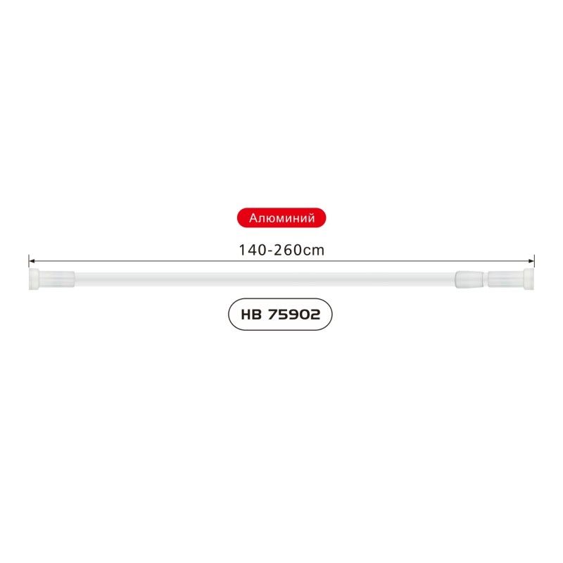 Карниз телескопический бренда Haiba. Имеет регулировку по длине от 110 до 260 см. Изготовлен из алюминия, что говорит о практичности изделия.