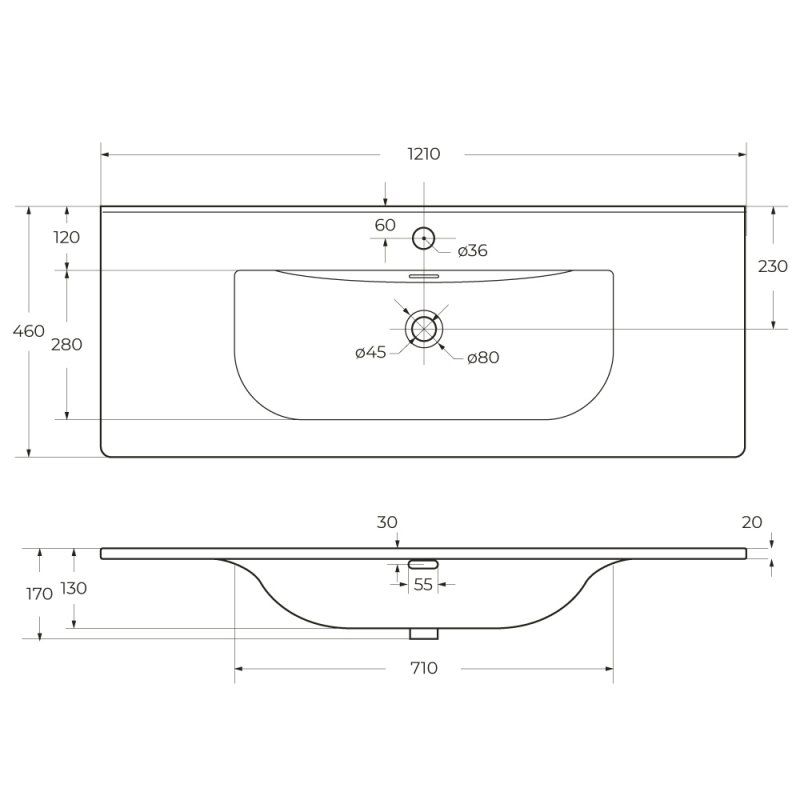 Дополнительная информация: база оснащена доводчиками, ручки скрыты в плоскости фасада, раковина сифоном не комплектуется