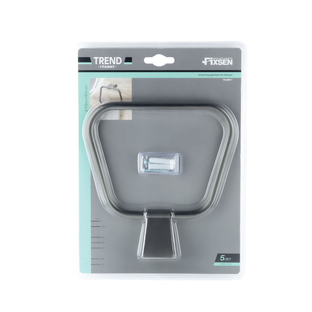 Кольцо для полотенец FIXSEN TREND GRAPHITE FX-98011, черный графит. Метод крепления: шурупы. Конструкция: кольцо.
