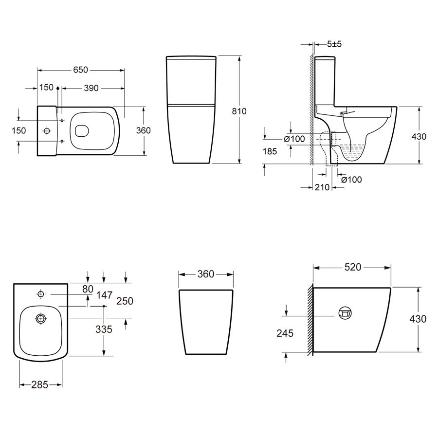 комплект крепежа; сиденье с крышкой; сливной бачок; сливной механизм; биде |