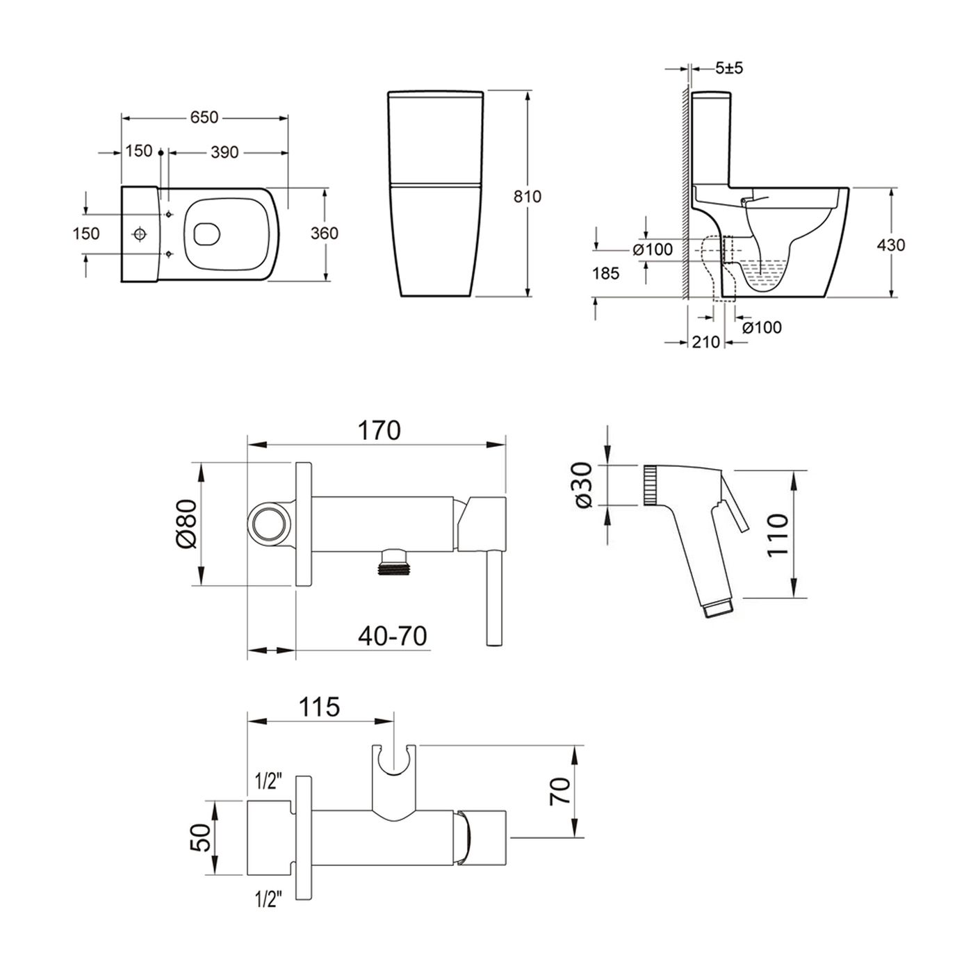 комплект крепежа; сиденье с крышкой; сливной бачок; сливной механизм; смеситель с гигиеническим душем |