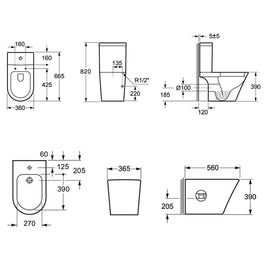 комплект крепежа; сиденье с крышкой; сливной бачок; сливной механизм; биде |