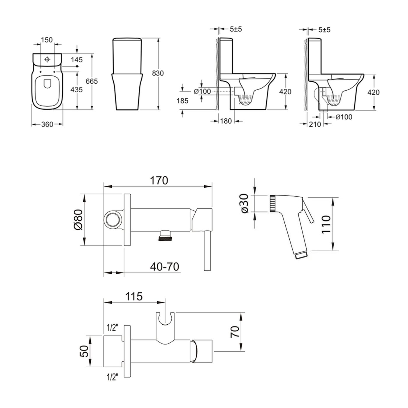комплект крепежа; сиденье с крышкой; сливной бачок; сливной механизм; смеситель с гигиеническим душем |