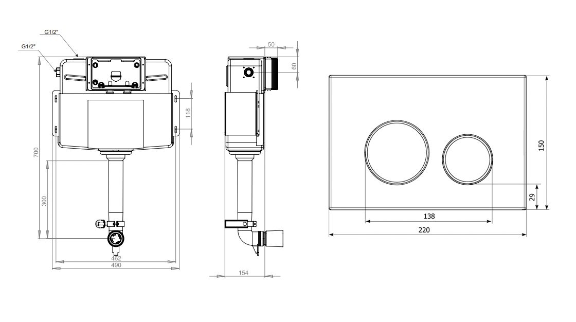 бачок скрытого монтажа с ревизионным окошком Relfix 38020010; укорачиваемый шаблон для отделки отверстия под клавишу смыва; набор для подключения приставного унитаза; комплект креплений; клавиша смыва Relfix 3805002C (цвет хром, материал пластик, толщина 13 мм - одно из самых тонких решений на рынке); инструкция по монтажу и эксплуатации; гарантийный талон. |