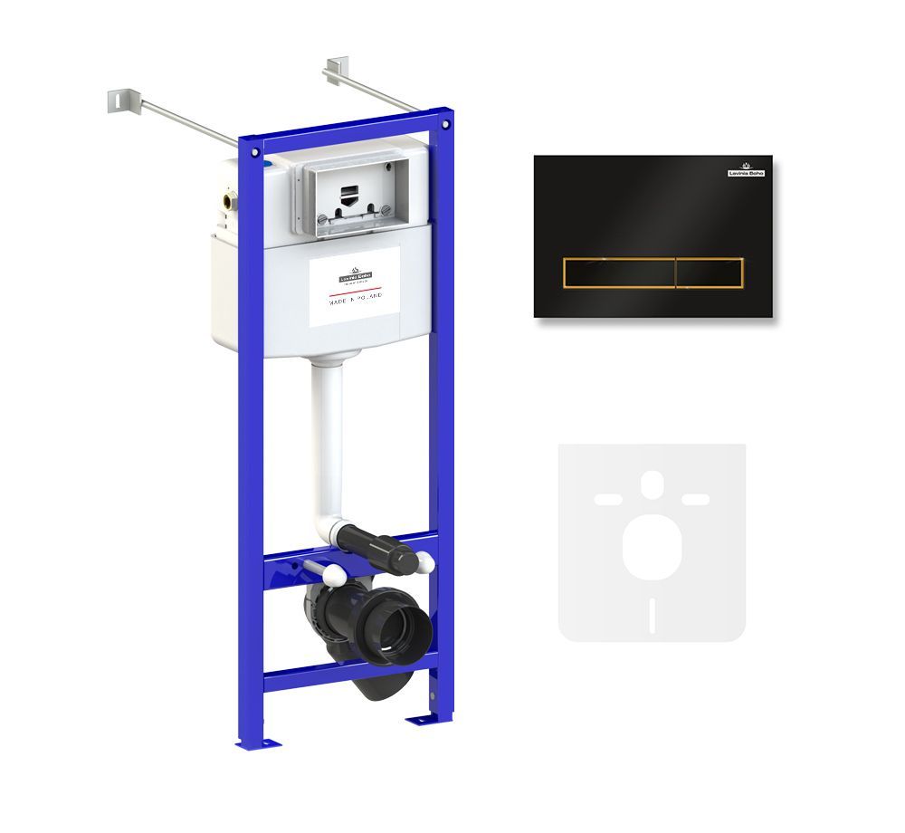 система инсталляции Relfix 38010020; комплект крепления для скрытого подвесного монтажа; шумоизоляция для подвесной керамики 38050010; клавиша смыва Relfix 38050801 (цвет матовый черный/золотой глянец, материал пластик, толщина 13 мм - одно из самых тонких решений на рынке); инструкция по монтажу и эксплуатации; гарантийный талон. |