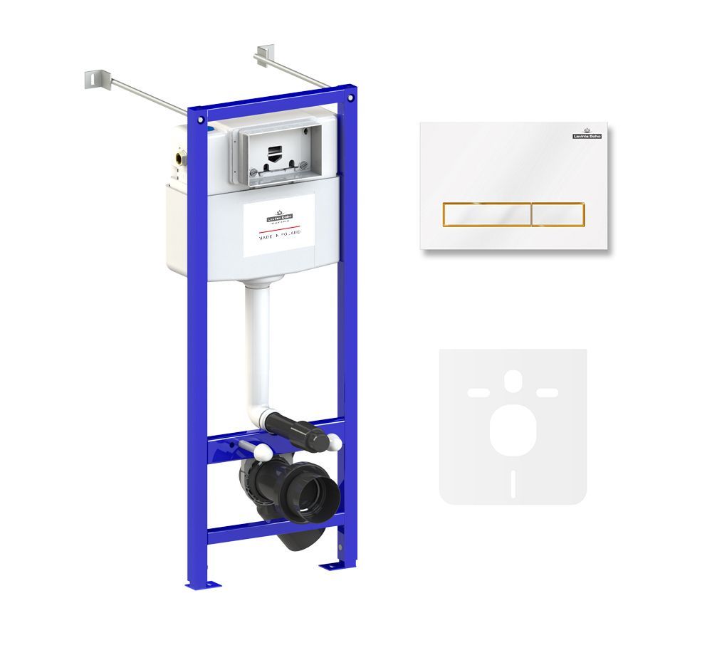 система инсталляции Relfix 38010020; комплект крепления для скрытого подвесного монтажа; шумоизоляция для подвесной керамики 38050010; клавиша смыва Relfix 38050802 (цвет белый/золотой глянец, материал пластик, толщина 13 мм - одно из самых тонких решений на рынке); инструкция по монтажу и эксплуатации; гарантийный талон. |