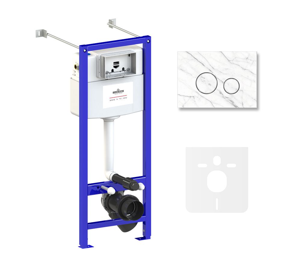 система инсталляции Relfix 38010020; комплект крепления для скрытого подвесного монтажа; шумоизоляция для подвесной керамики 38050010; клавиша смыва Relfix 38050904 (цвет statuary, материал камень, толщина 4 мм - одно из самых тонких решений на рынке); инструкция по монтажу и эксплуатации; гарантийный талон. |