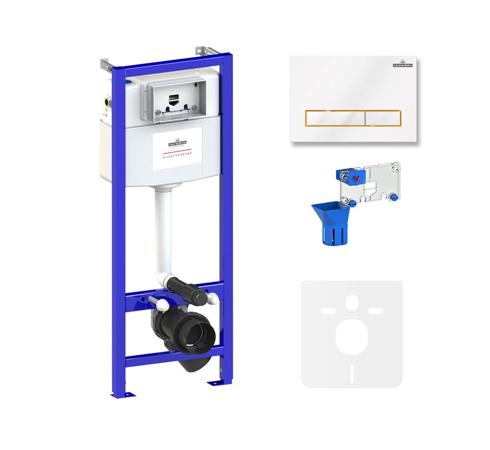 система инсталляции Relfix 38010010; комплект крепления для скрытого подвесного монтажа; шумоизоляция для подвесной керамики 38050010; клавиша смыва Relfix 38050802 (цвет белый/золотой глянец, материал пластик, толщина 13 мм - одно из самых тонких решений на рынке); диспенсер для дезинфицирующих средств 38040010; гигиеническая таблетка (1 шт); инструкция по монтажу и эксплуатации; гарантийный талон. |