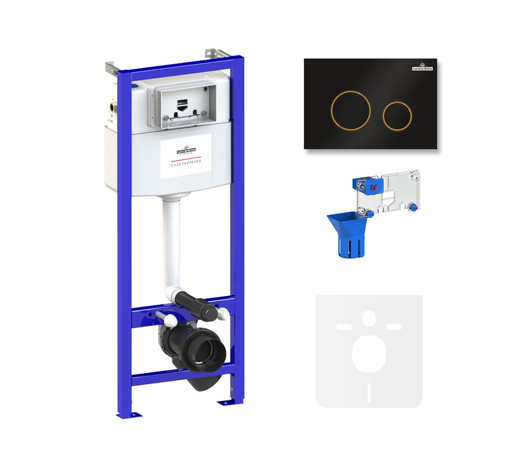 система инсталляции Relfix 38010010; комплект крепления для скрытого подвесного монтажа; шумоизоляция для подвесной керамики 38050010; клавиша смыва Relfix 38050803 (цвет матовый черный/золотой глянец, материал пластик, толщина 13 мм - одно из самых тонких решений на рынке); диспенсер для дезинфицирующих средств 38040010; гигиеническая таблетка (1 шт); инструкция по монтажу и эксплуатации; гарантийный талон. |